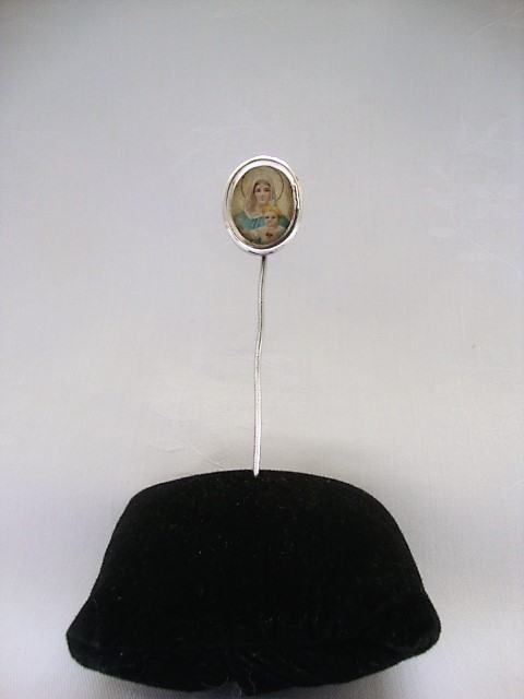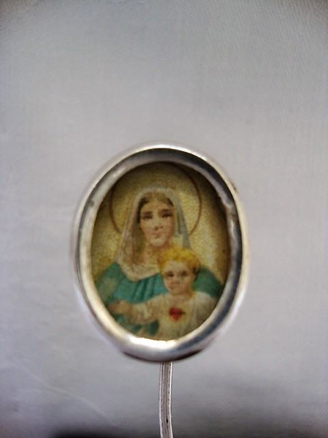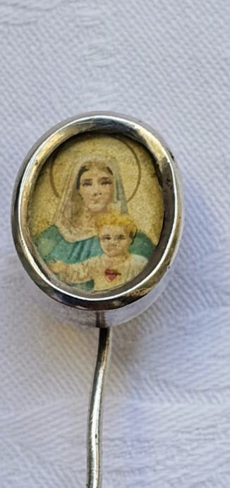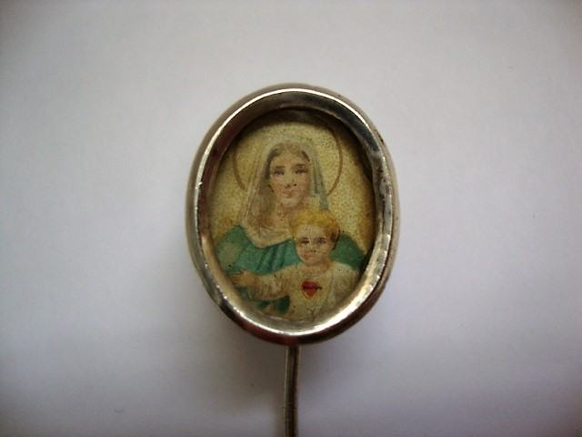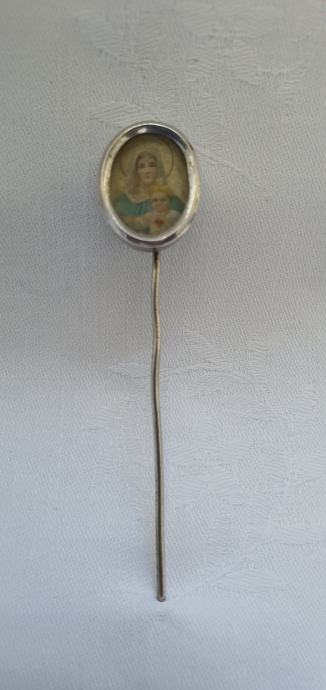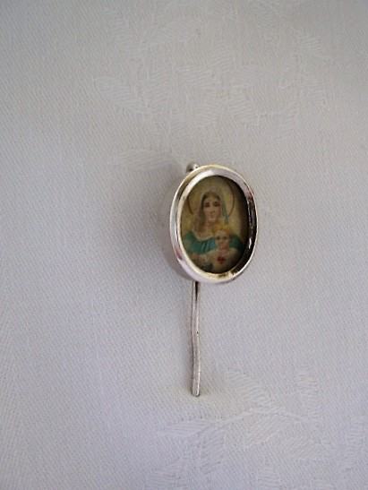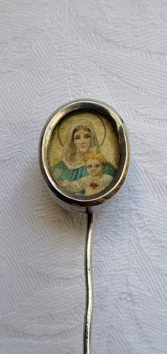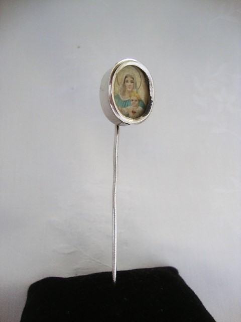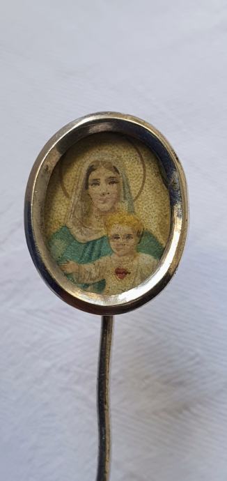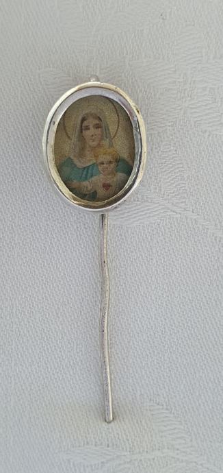Ručni rad iz 18.stoljeća medaljon na igli za narodnu nošnju ovalan unutar je slika Gospa sa djetetom