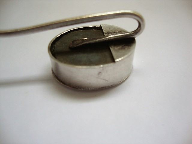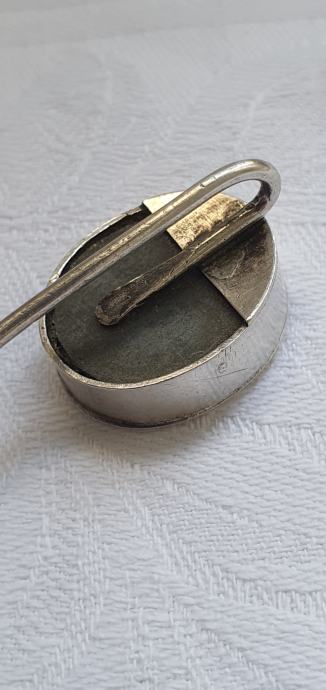 Ukupna visina 9,5 cm , ovalni dio 2,2 cm x 1,8 cm na ovalnom dijelu bočno se nalazi i žig iz vremena
