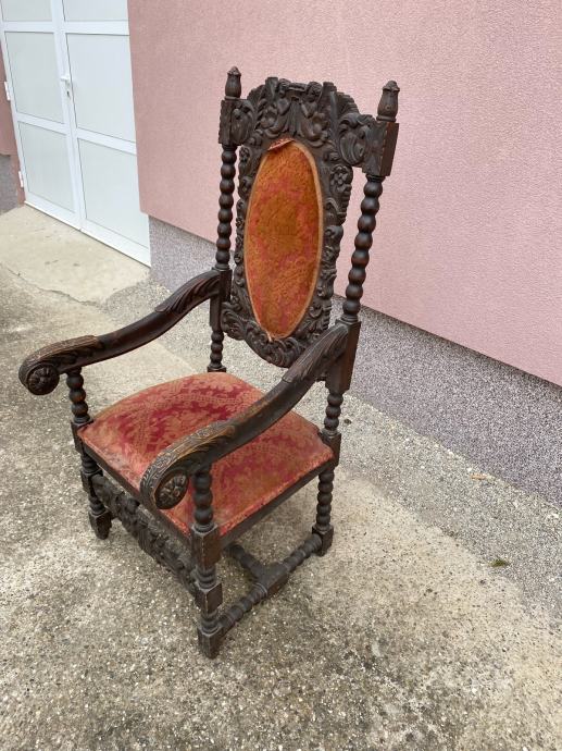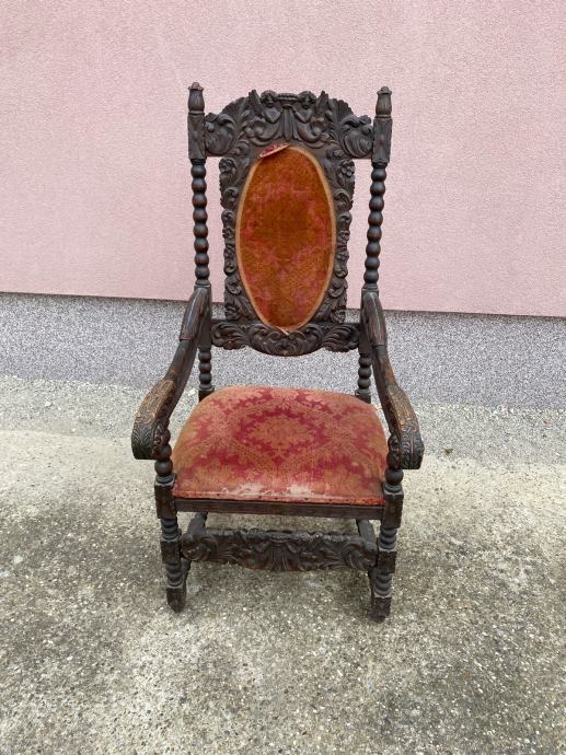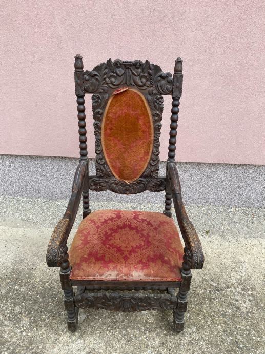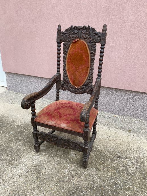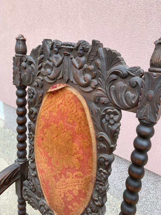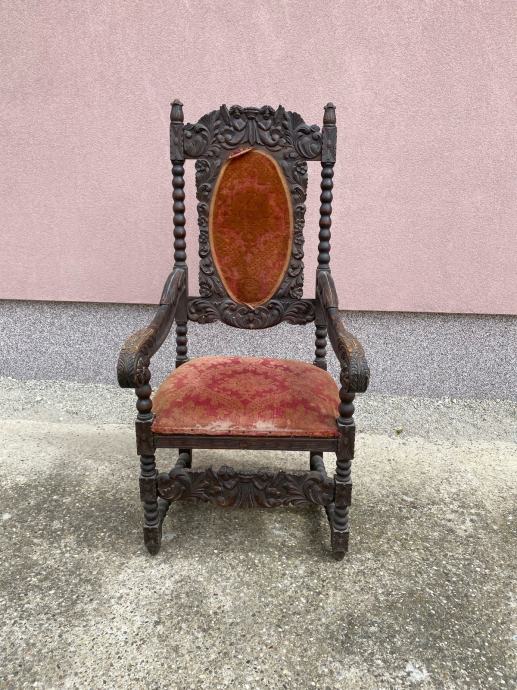 Fotelja napravljena krajem 19 ili pocetkom 20 stoljeca u vrlo dobrom stanju sa lijepim rezbarijama.