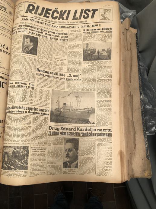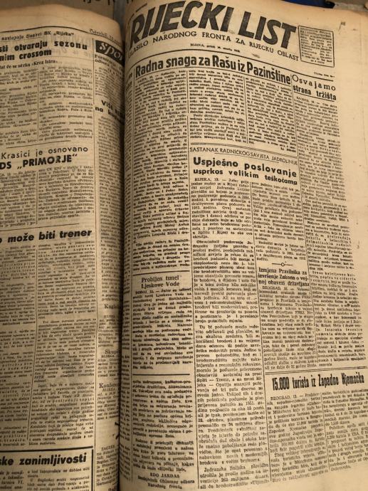 Prodajem komplet uvezanih riječkih novina Riječki list (u to vrijeme tako se zvao Novi list) cijela 1952. godina.