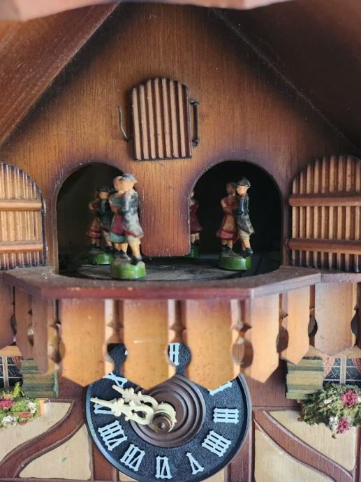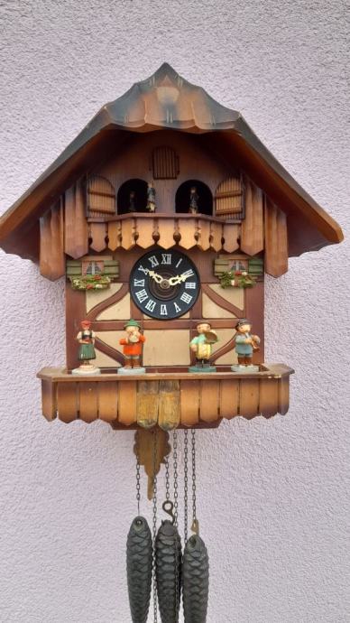 Nudim rijetkost: zidni sat kukavica, ptica “kuka” svakih pola sata jednom i na puni sat javlja koliko je sati. Kad ptica “otkuka”, uključuje se muzički instrument sa plesačima i sviračima (posebne figure) koje se okreću lijevo-desno! Dimenzije sata: Visina 32 cm širina 30 cm i dubina 18 cm.