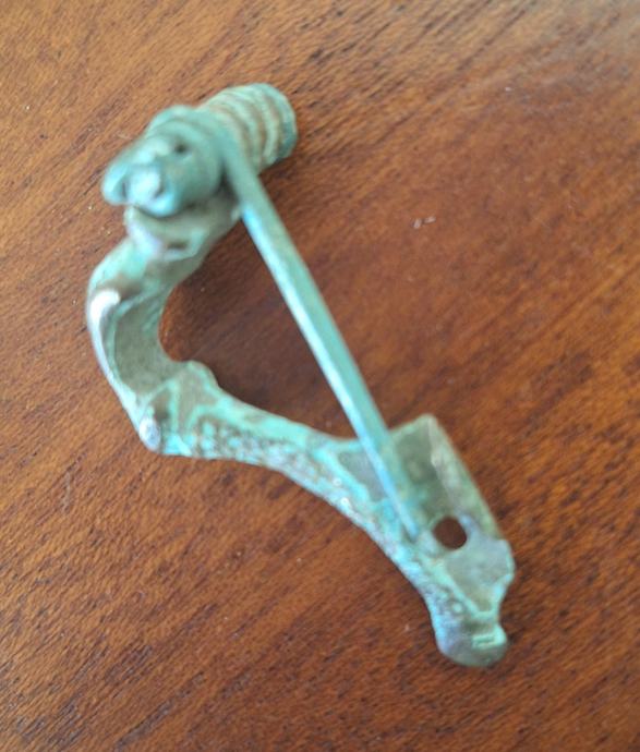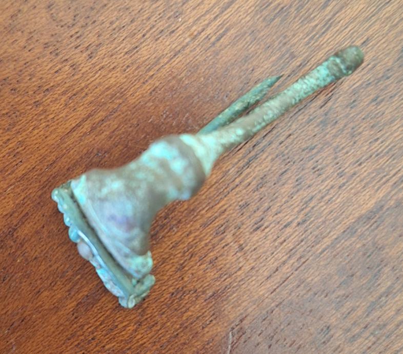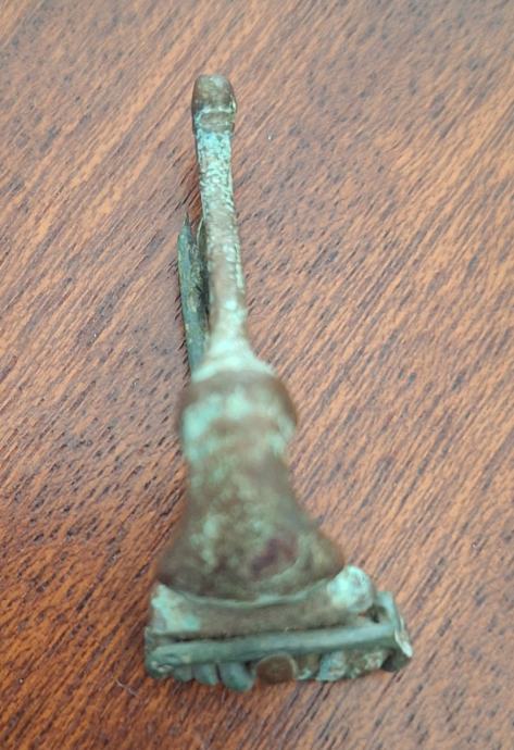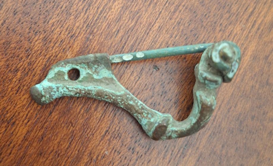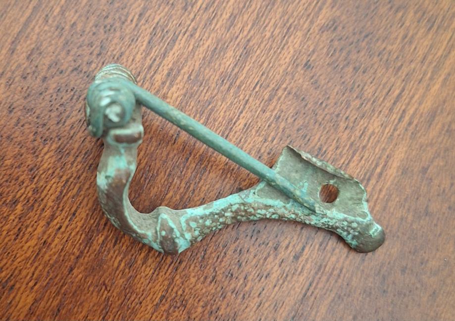 Pronađeno nečišćeno stanjeJapodska fibula(ukras). Izrađena od bronze. Japodi su venetsko-ilirska plemenska etnogrupa iz starog vijeka. Uglavnom su naseljavali područje sjeverozapadne Ilirije u zaleđu jadranske obale i istočno od Istre, između rijeka Kupe, Sane i Zrmanje i planine Velebit do Jadranskog mora. Središte njihove države nalazilo se u na području današnje Like u Hrvatskoj.