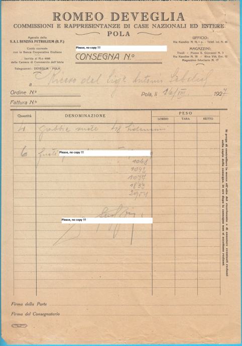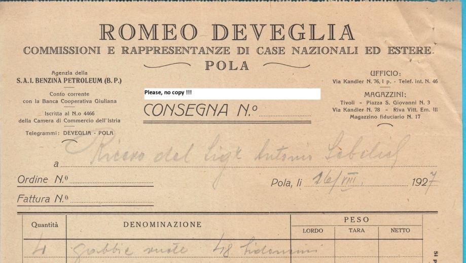 ROMEO DEVEGLIA - POLA stari memorandum iz 1927. godine * Pula - Istra