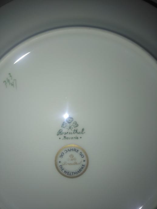 Prekrasan elegentni Rosenthal ukrasni tanjur napravljen povodom 50.-e obljetnice. Vrhunski izrađen rub. Perfektno stanje, nigdje okrhnut, promjer 19.5 cm