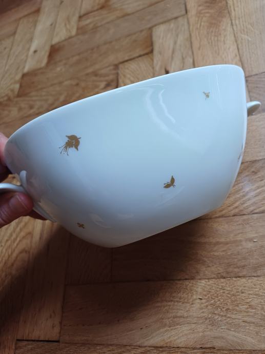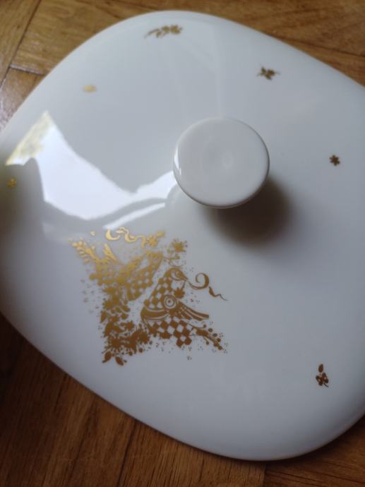 Lijepa Rosenthal posuda za slatkiše, svijeli krem porculan s pozlatom i poklopcem, nerabljeno, bez oštećenja, dimenzije na otvoru 21×19 cm, suženo prema dnu.