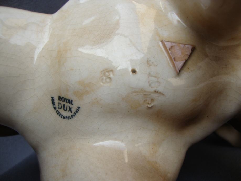 Pink žig 378/3 ,59 te žig Royal Dux made in Czechoslovakia cca 1930 art deco figure animal.