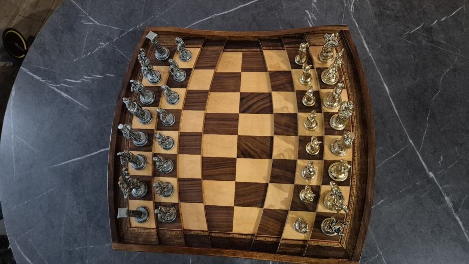 Prodajem unikatni, ručno izrađeni šah inspiriran antičkim rimskim arenama. Samo postolje izgleda kao mala koloseumska borbena pozornica.