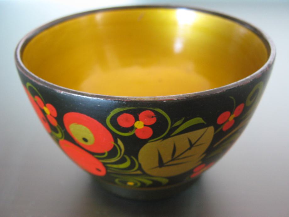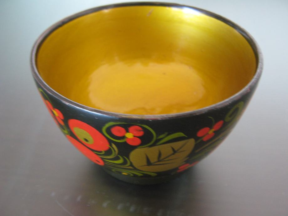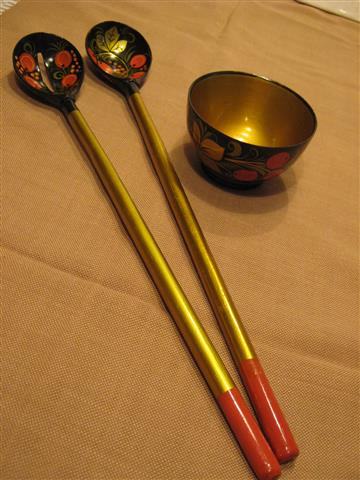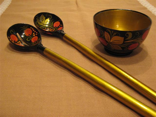 Drveni ukrasni predmeti, pozlaćeni, dvije velike žlice i dvije zdjelice