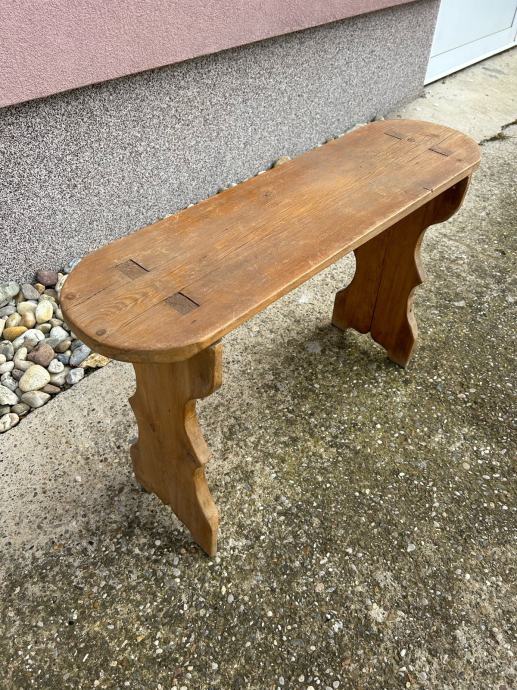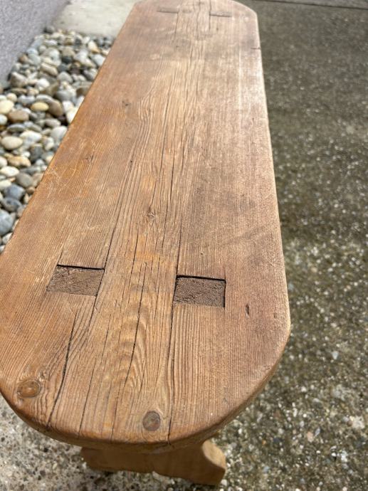 Antikna rustikalna klupica napravljena od jelovine u vrlo dobrom stanju.