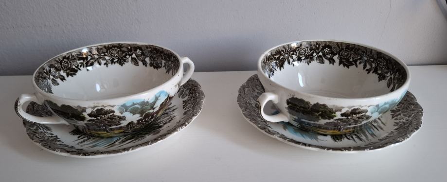 2 salice za juhu s tanjuricima, engleski porculan, country style