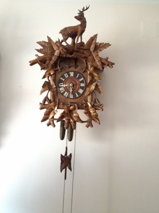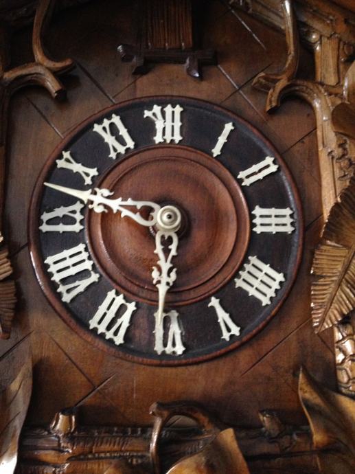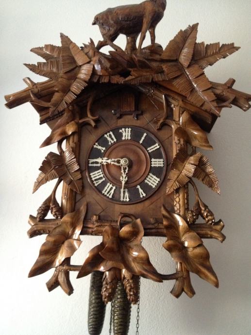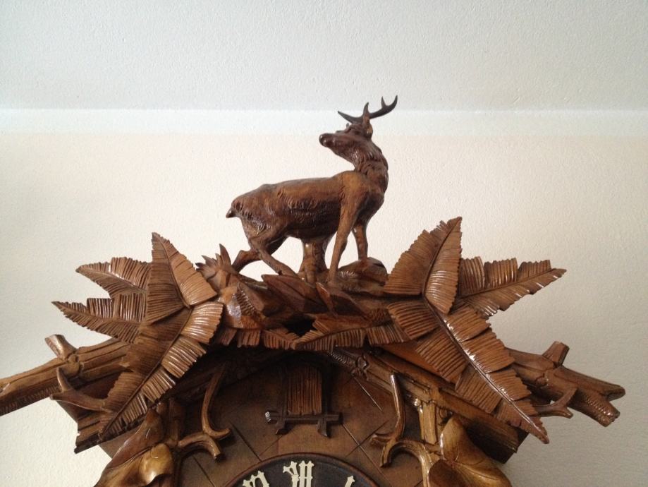 kukavica sat ispravan,kompletan,super stanje,ručno rezbaren,rad stari majstora,sat je jako velik što je danas rijedkost,visina sata je sa klatnom 95cm-bez klatna75cm-širina55cm oglašava se na pol sata i na točno vrijeme,starost preko 100 godina,moguća dostava.