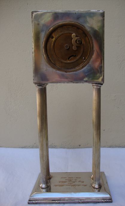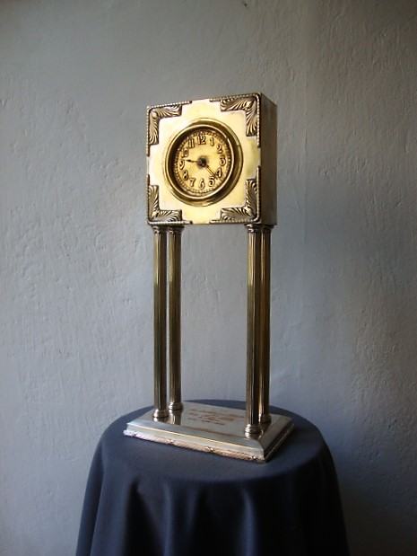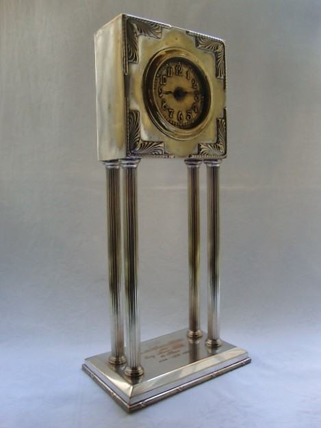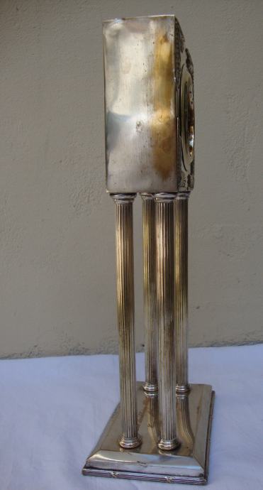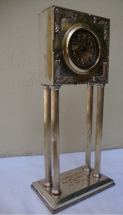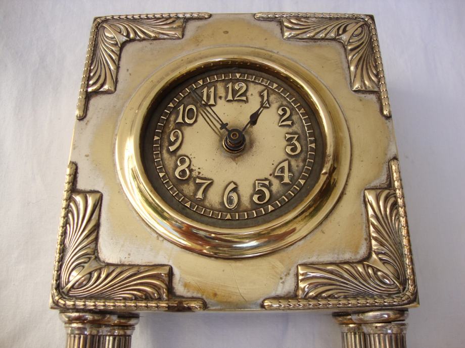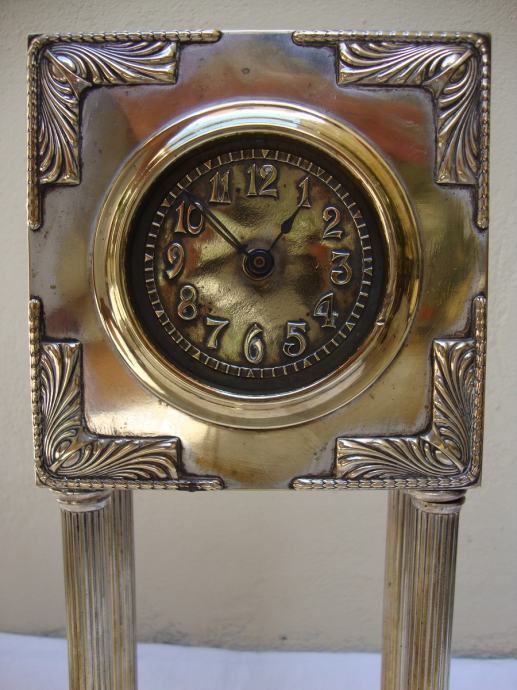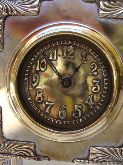 Junghans kaminski njemački austrijski sat od posrebrenog mesinga izrađen u periodu rane secesije oko 1890.-1905.godine u Bečkoj manufakturi Wolkenstein & Gluckselig , dizajnera Emanuel Josef Mangold