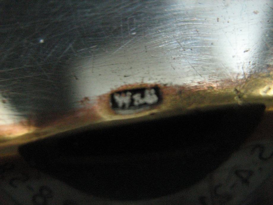 Na postolju se nalazit utisnuti pečat / žig u kvadratiću W&G (WOLKENSTEIN & GLUCKSELIG ) firma proizvođača sa kraja 19.st-,početak 20. stoljeća (1890.-1910..godina) dakle prva oznaka bez prekriženih čekića