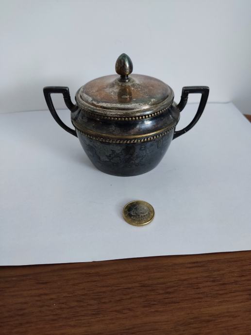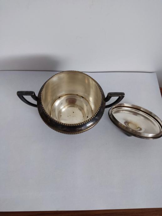 Šećernica. Posrebrena. Širina oko 7 cm, visina oko 10 cm.