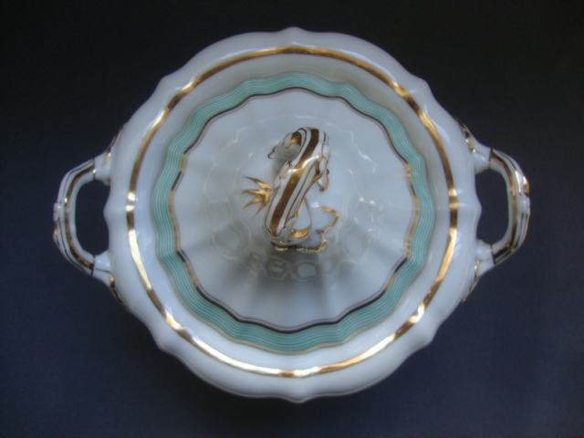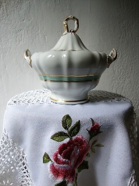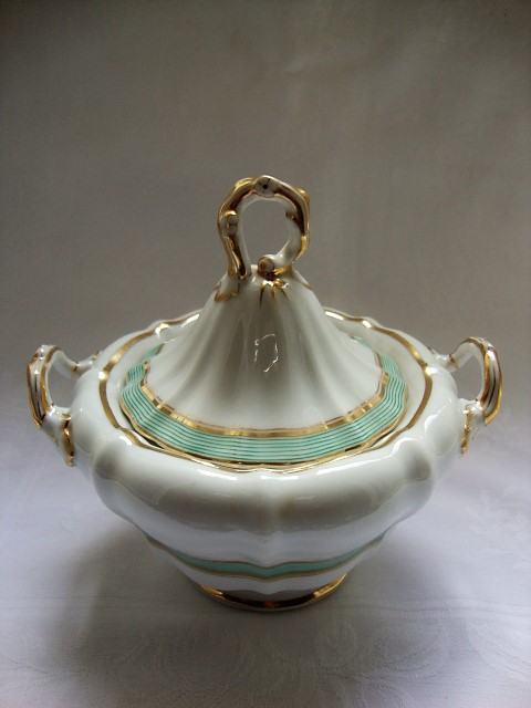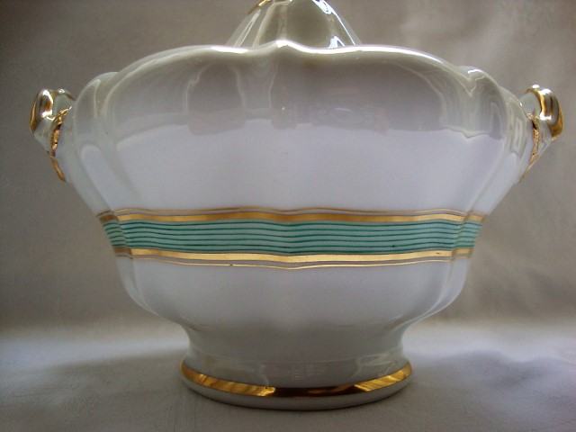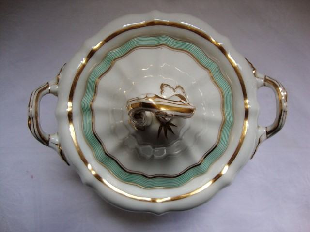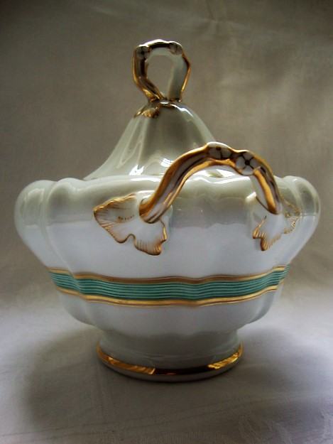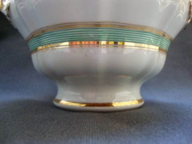 Ode lipoti nema kraja zelene linije pozlata cvijetići ima dva utisnuta žiga manufakture ispod na postolju veliko P I veliko kao K podsjeća na VOLKSTEDT Njemacka