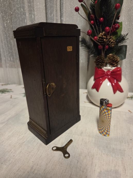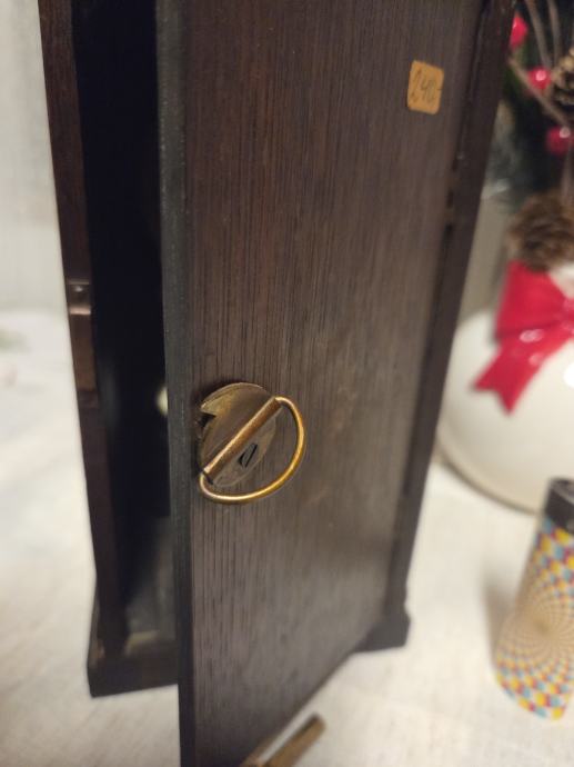 Navijač. Tipično bečki secesije poznatog dizajnera iz tog perioda Otto Prutscher. Drvo kućište mehanizam mesing sa klatnom i sopstvenim ključem. Rijetkost