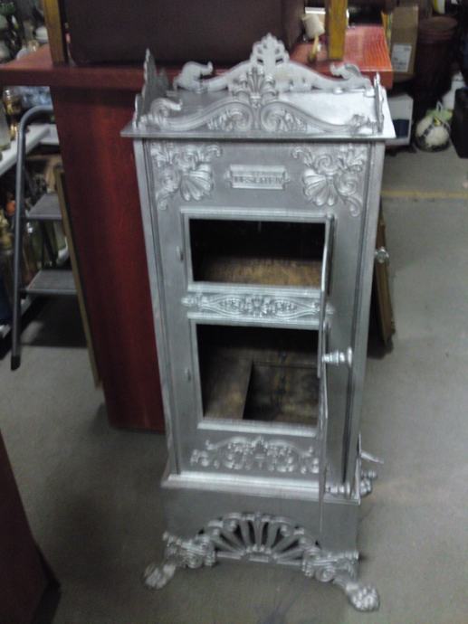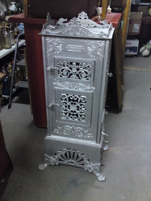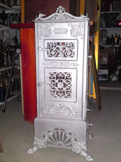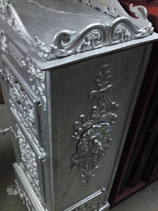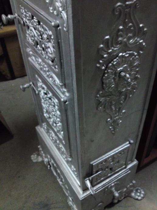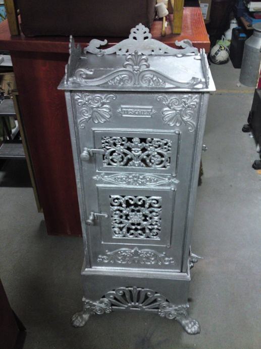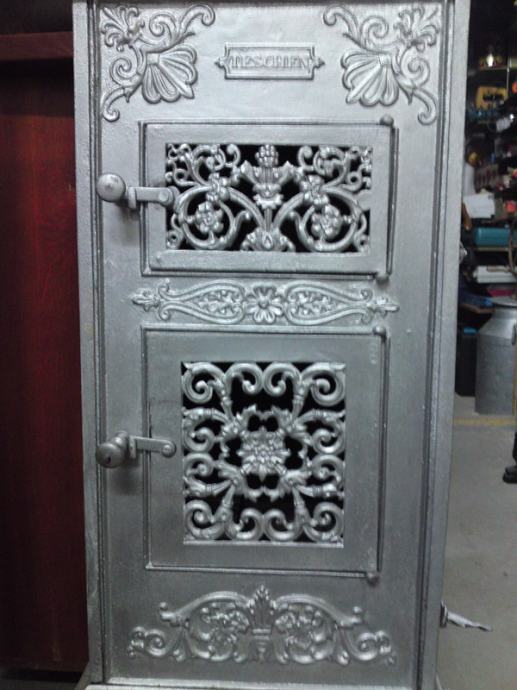 Prekrasna secesijska peć, restaurirana u srebrnu boju, u odličnom stanju, u funkciji.