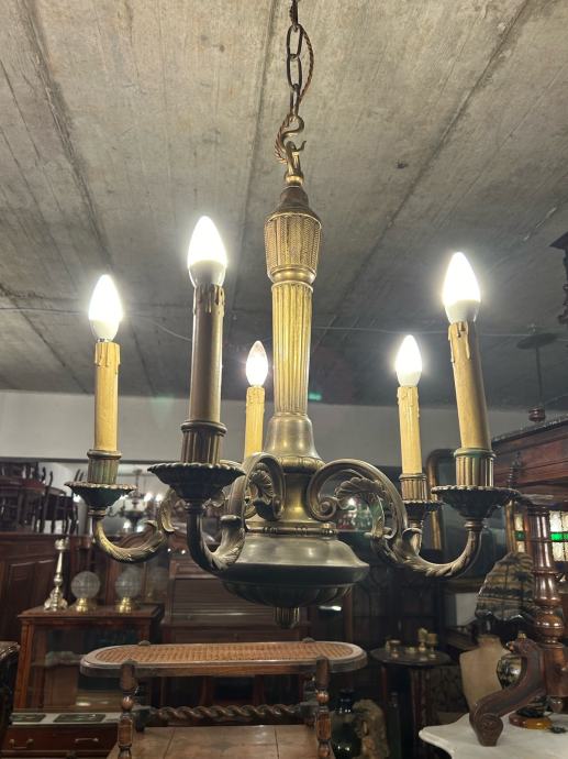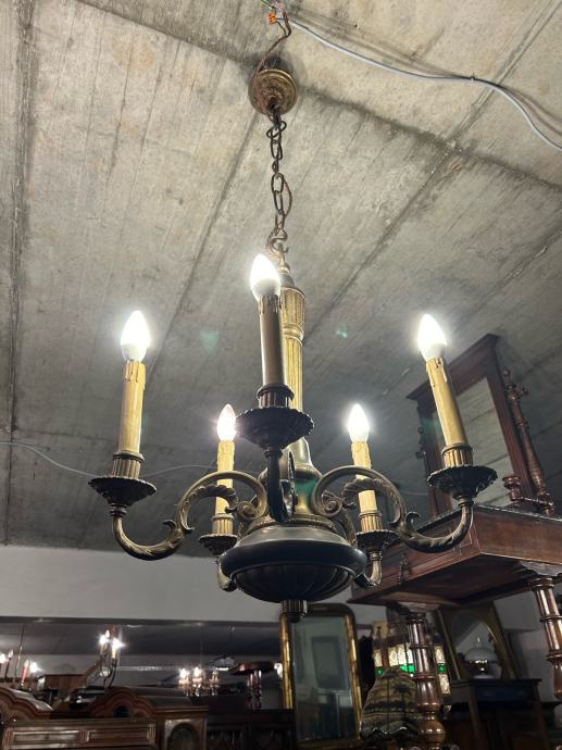 Secesijski luster, napravljen od pronce u ispravnom stanju.
