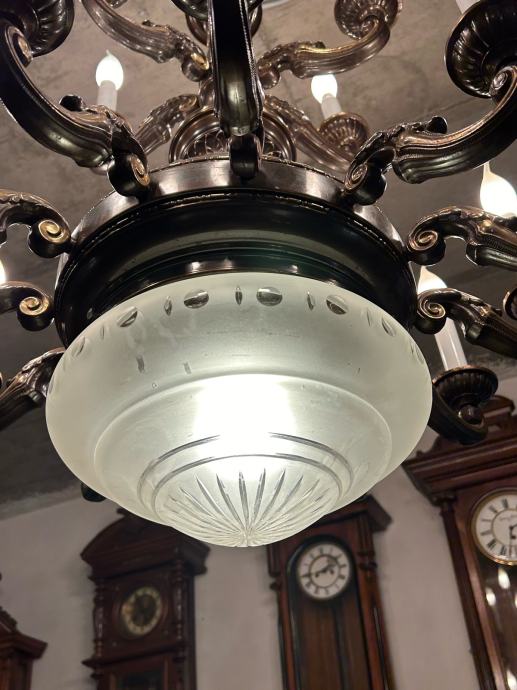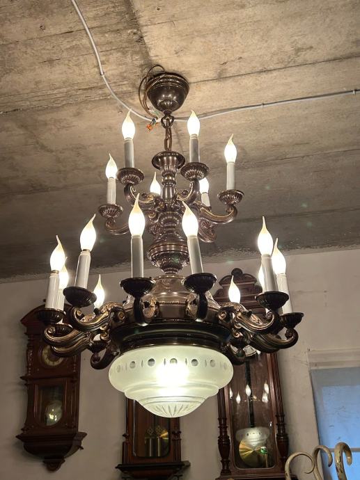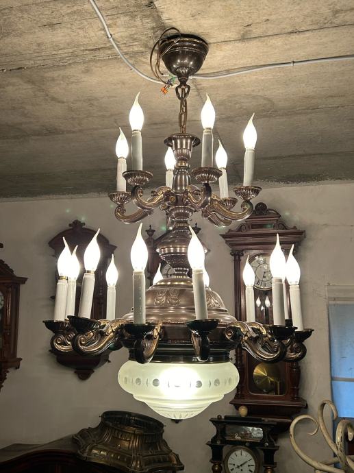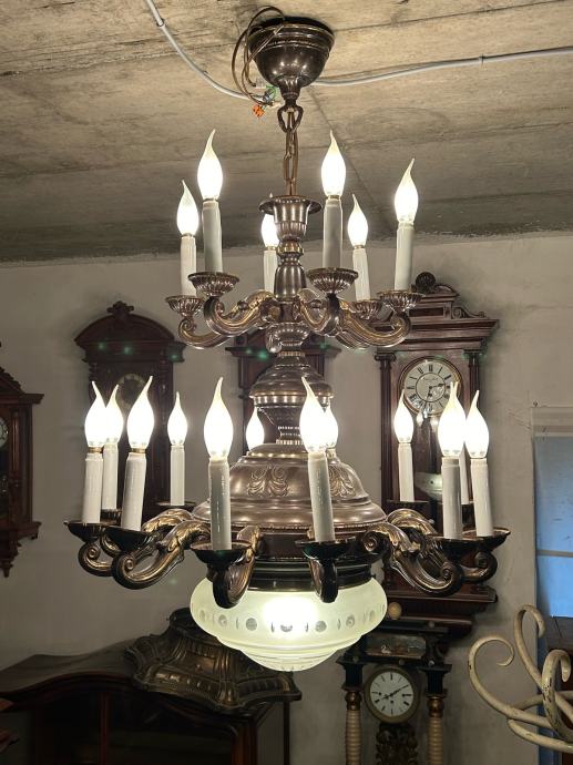 Secesijski luster u ispravnom stanju sa 18 krakova i 19rasvjetnih tijela.