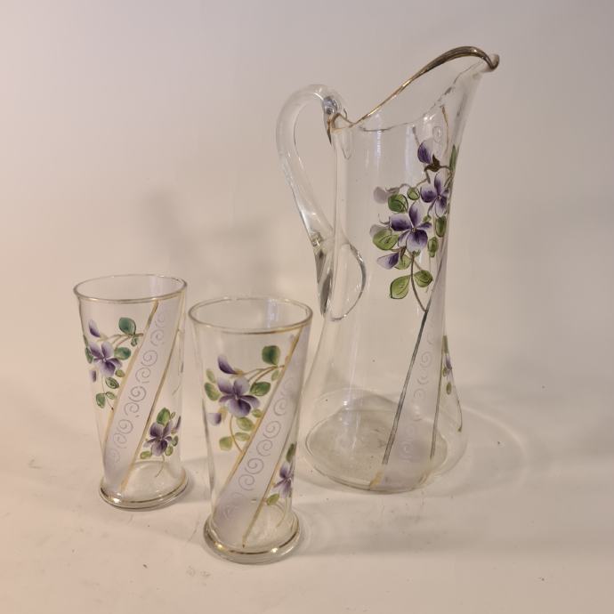 Set od dvije čaše + vrč, ručno oslikano, iz perioda 1940-ih.