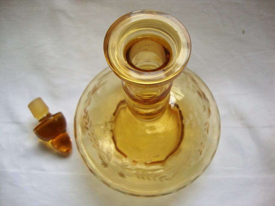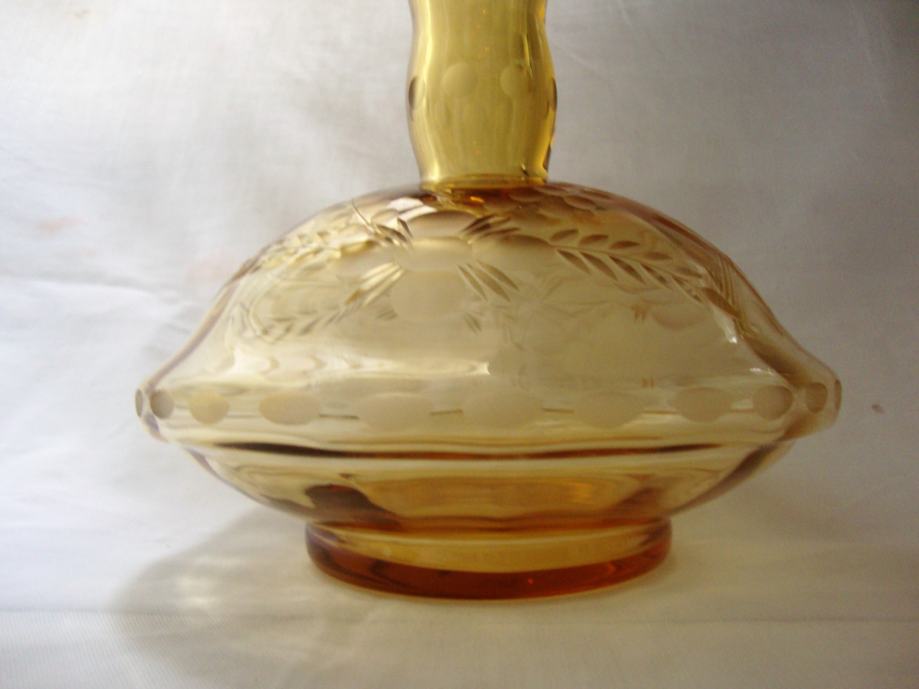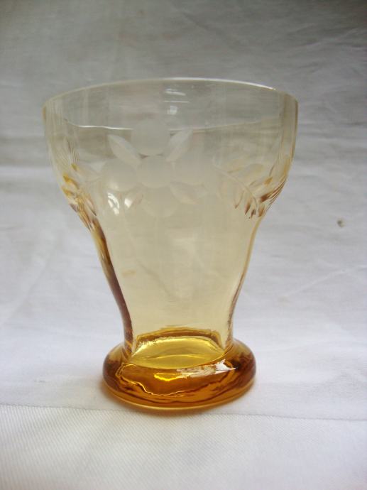 Secesijski set za likere aperitve jantarnog žuto brušenog stakla 1910
