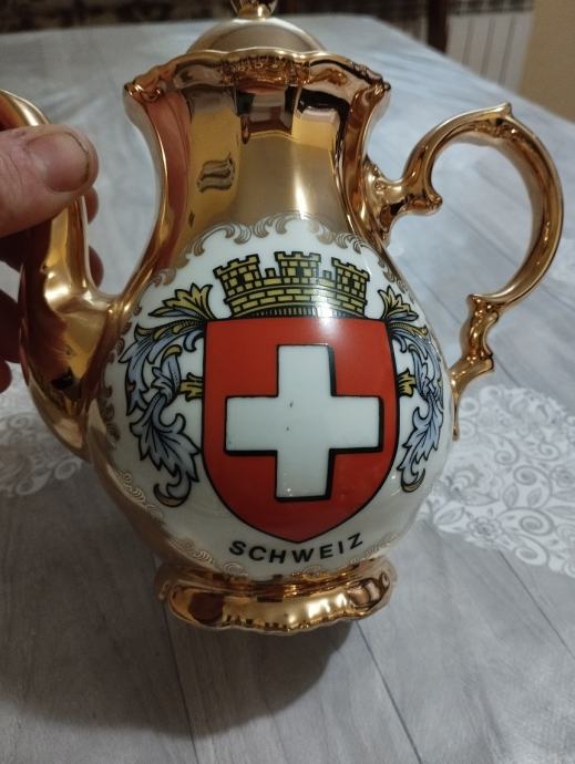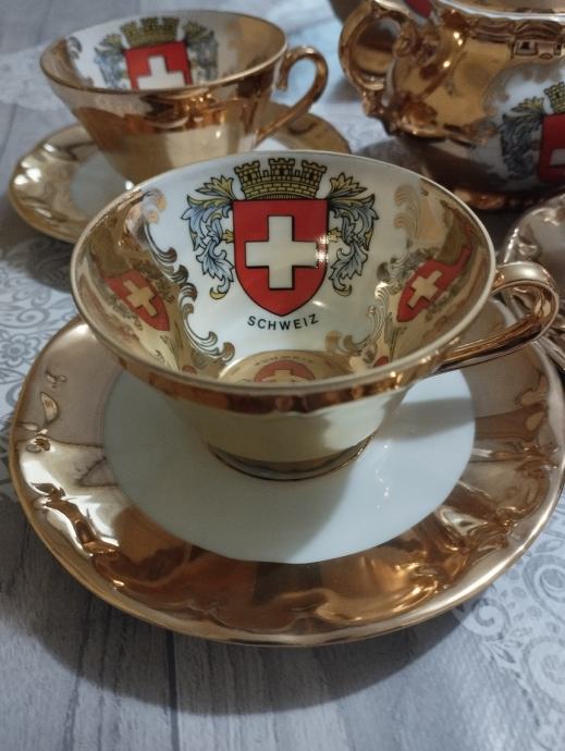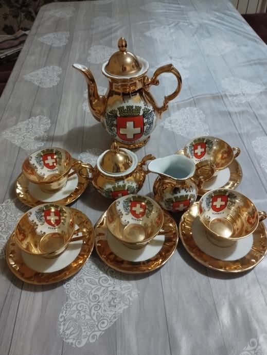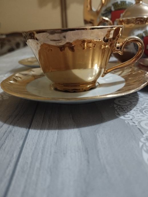 prodajem pozlaćeni servis za kavu ili čaj,posuda za šećer,čajnik,nekorišteno,proizvođač bavaria njemačka,cijena kompleta iznosi 55eur