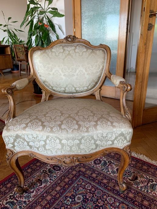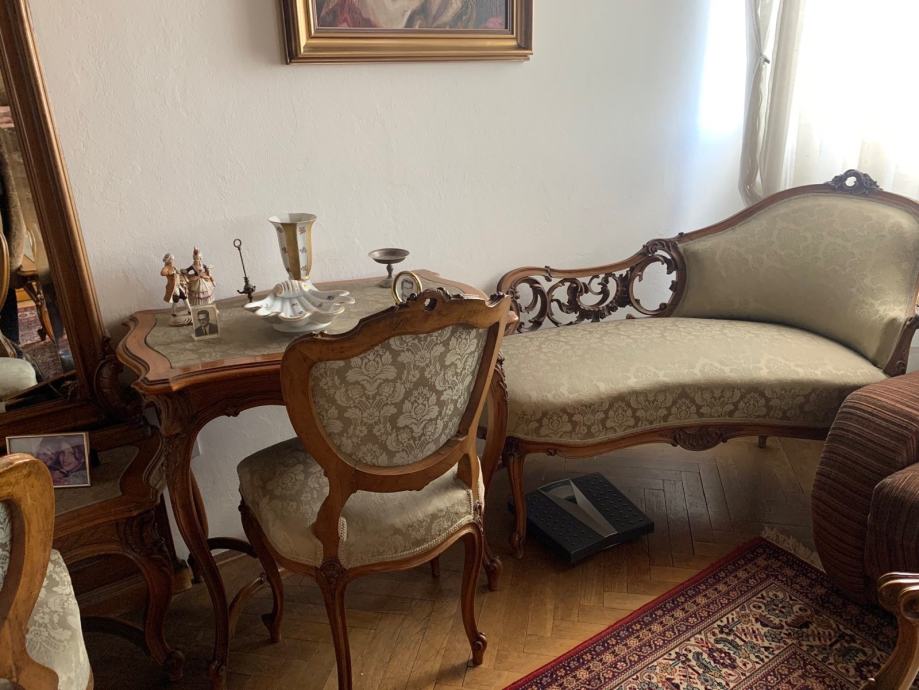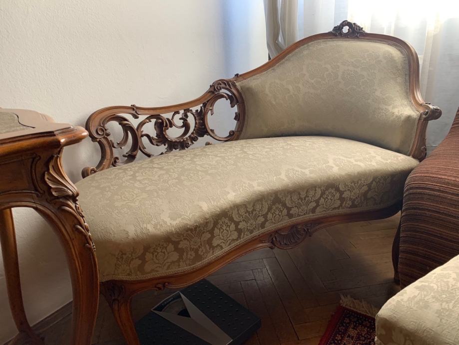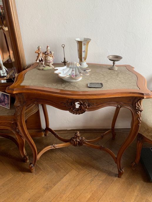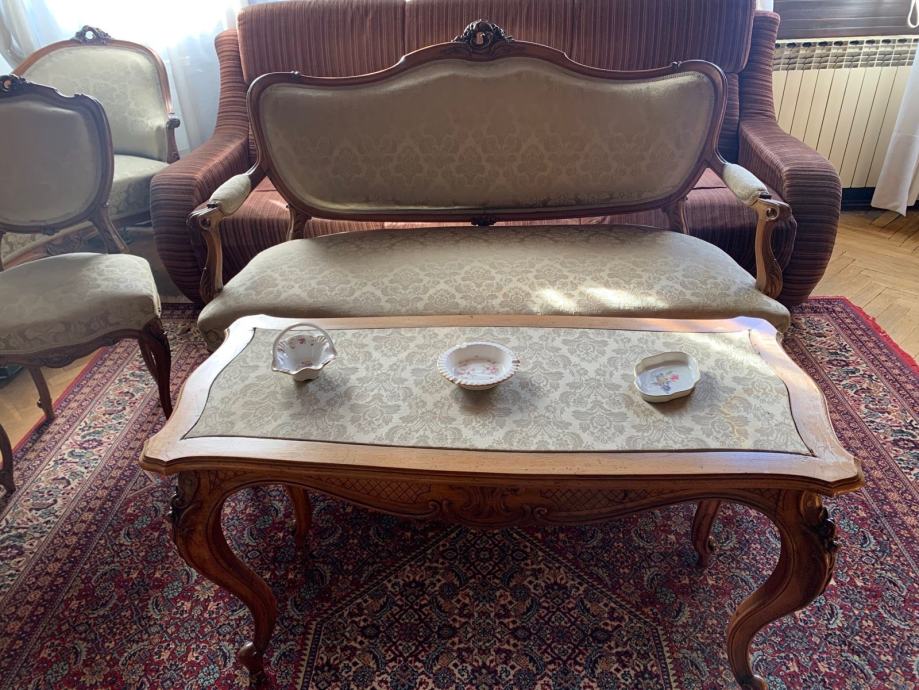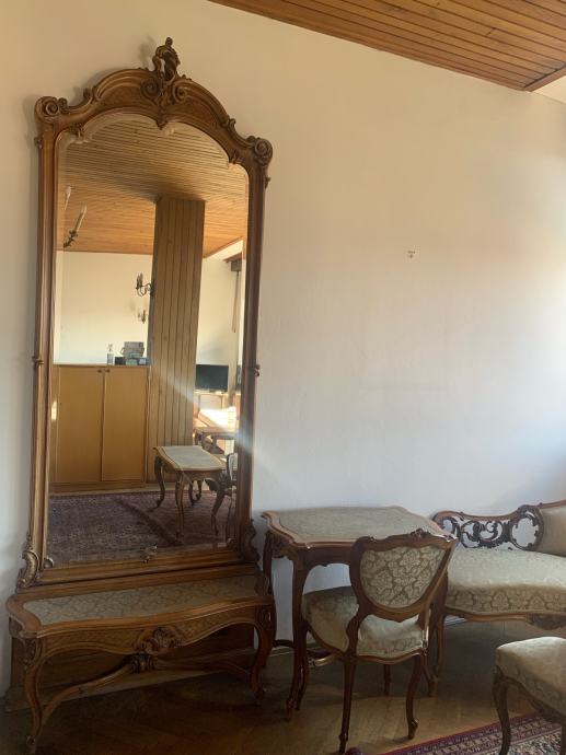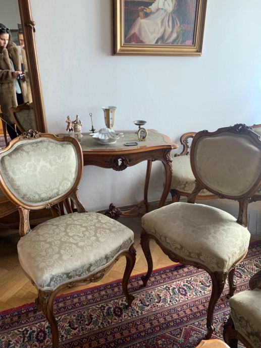 Prodajem set antiknog namještaja iz 1930-ih napravljen u stilu rokoko, nekoristen i u izrazito dobrom stanju. Sastoji se od dvosjeda, sofe, 4 stolca, stolića za kavu i radnog stola te stalaže s velikim ogledalom i zidnom vitrinom. Set se prodaje zajedno, no po dogovoru mogu i samo pojedini komadi.