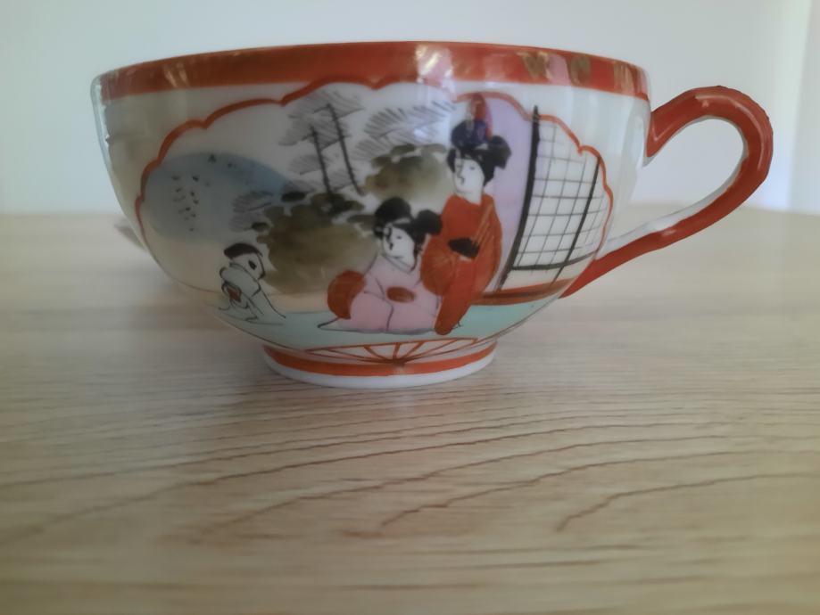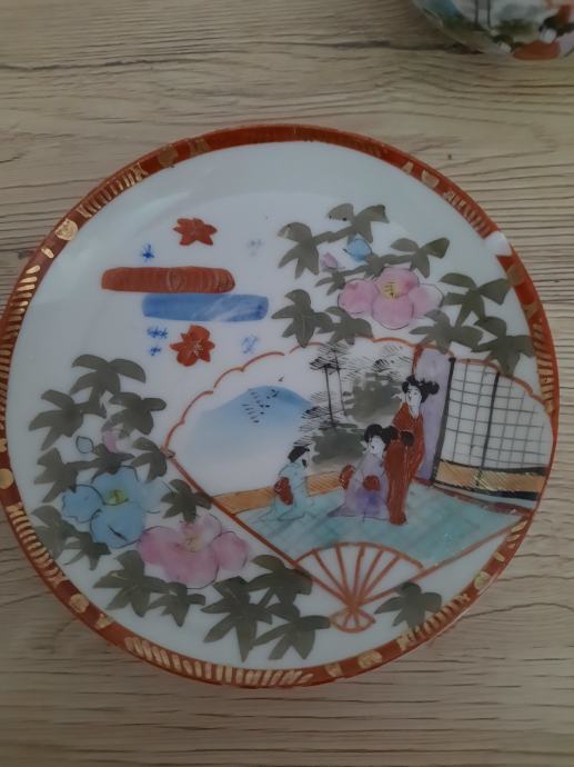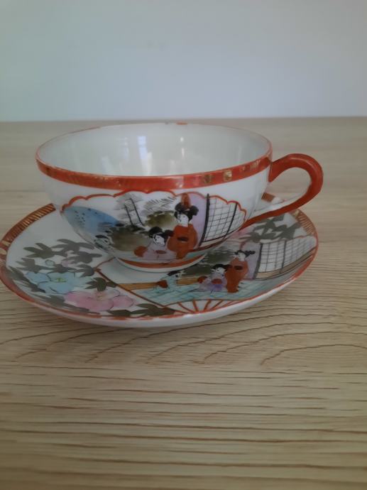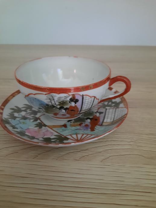 Prodajem vintage porculansku šalicu oslikanu tematikom gejša s tanjurićem s istim motivima u kompletu