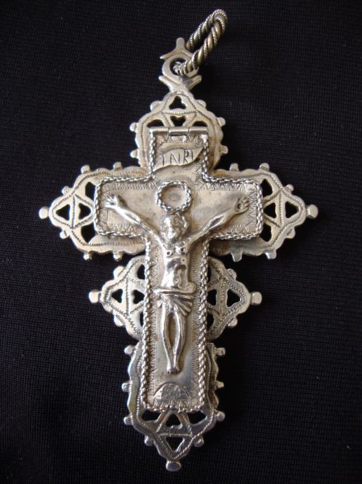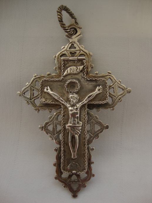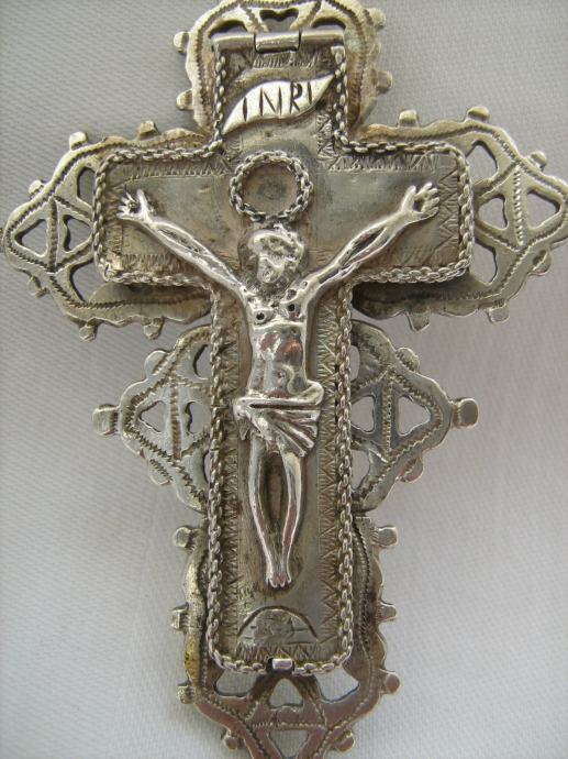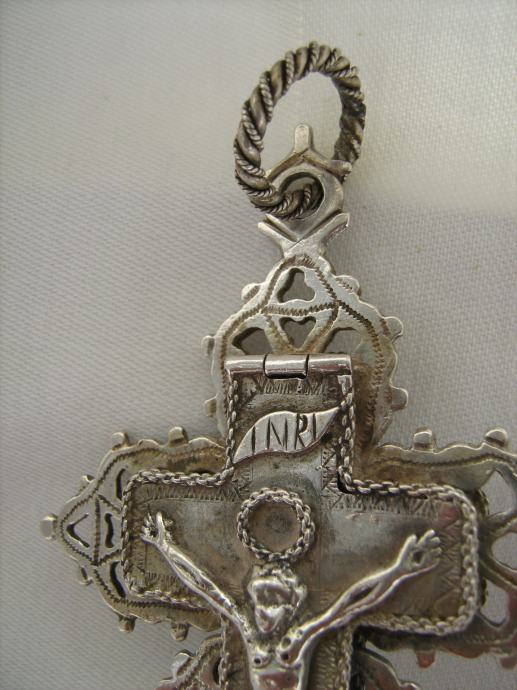 Srebrni privjesak raspelo koje se otvara,izrađen ručno u 18. stoljeću oko 1750.godine veoma rijetko!!