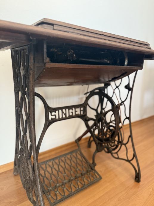 Prodajem originalnu antiknu Singer šivaću mašinu (singericu) s karakterističnim metalnim postoljem i drvenim poklopcem. Mašina se može koristiti i kao dekorativni komad ili dio rustikalnog interijera.