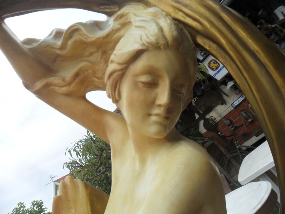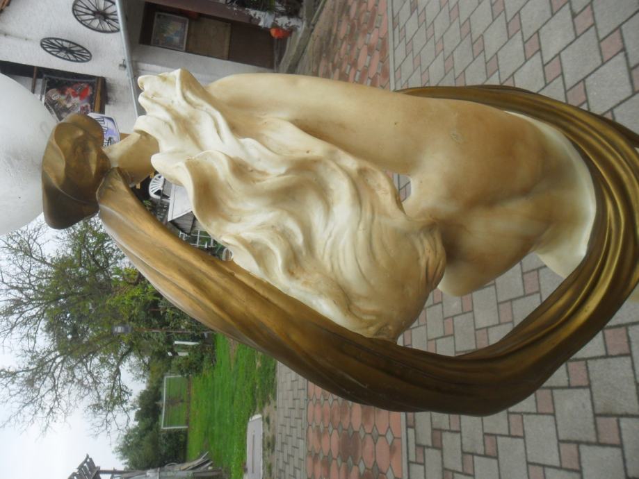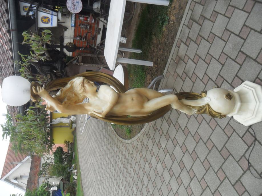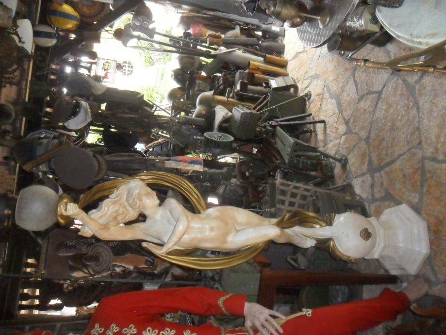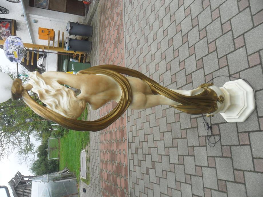 prekrasna stara skulptura gole djevojke koja na glavi ima sobnu svetiljku(220v),jako je dekorativna i bez oštečenja,materijal od kojeg je izrađena mi nije poznat..težina 15kg,kompletna visina sa lampom je 180cm,bez lampe 165cm,širina u najširem dijelu je 45cm,,na vrhu možete ugraditi lampu koja se vama sviđa,skulptura je prekrasna i najbolje vidjeti osobnim dolaskom,usput pogledajte moje ostale oglase antikviteta i drugih starina