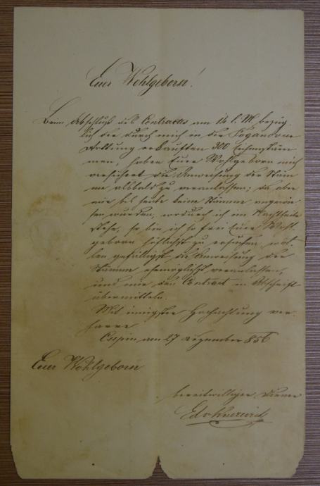Slavonija - Čepin - Osijek 1856. g . dokument, Adolf Danhelovsky