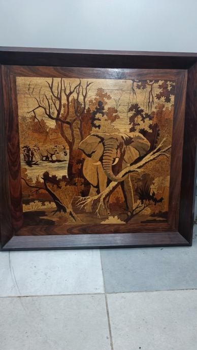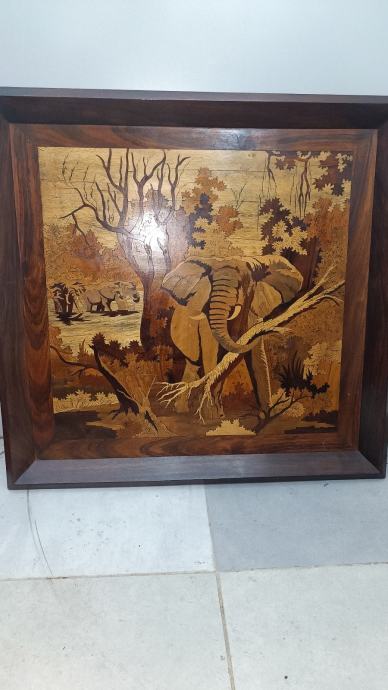 Prodajem original rukotvorinu rezbareno drvo umjetničku sliku sa motivom slona. Svaka druga boja od različitog drva, posebna tradicionalna metoda izrade, nepoznati autor, original uvoz iz Afrike.