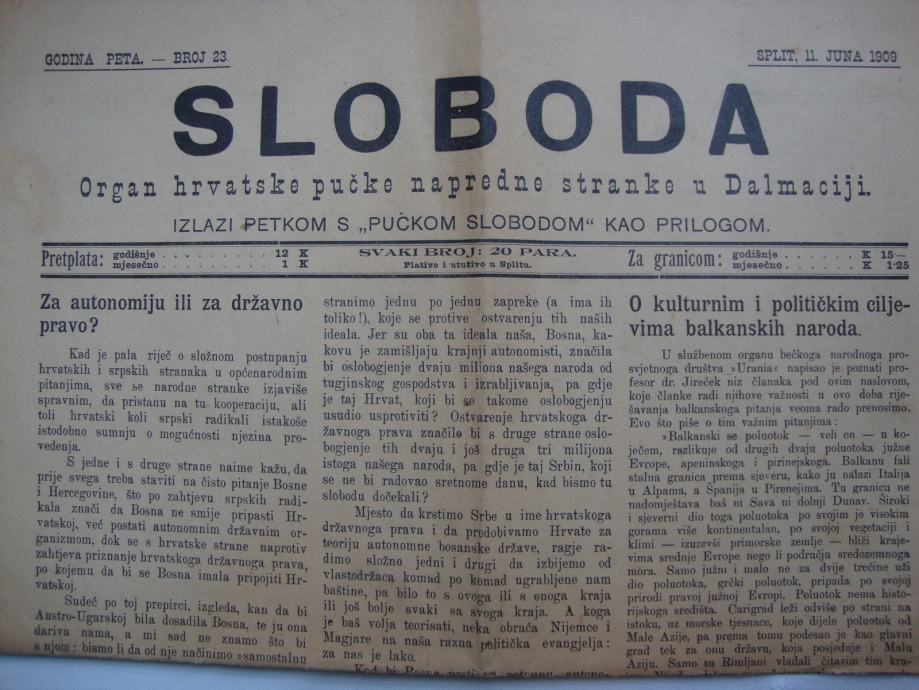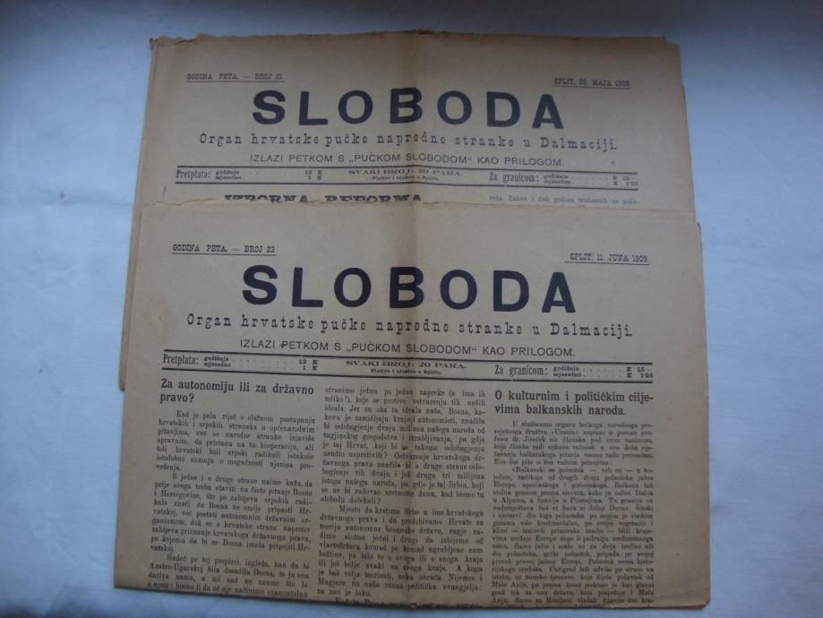 Dvije novine koje su izlazile sa Pučkom Slobodom kao prilogom također iz 1909. godine u odličnom stanju.