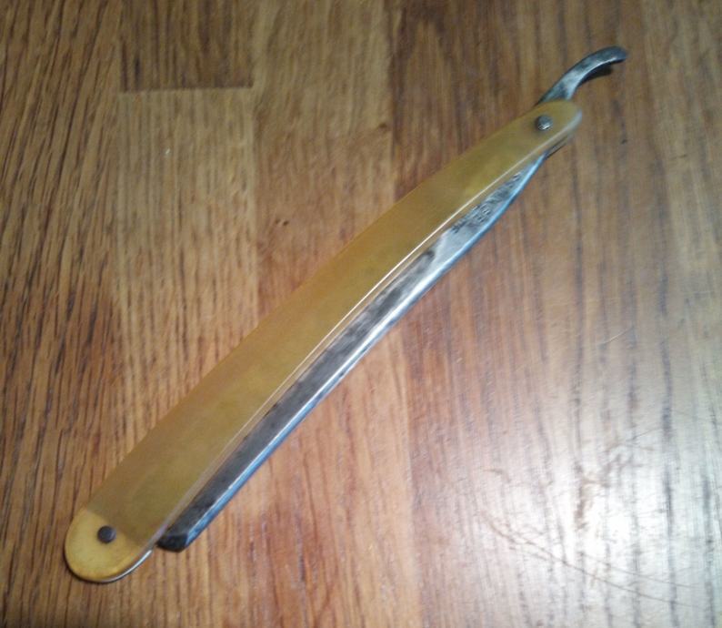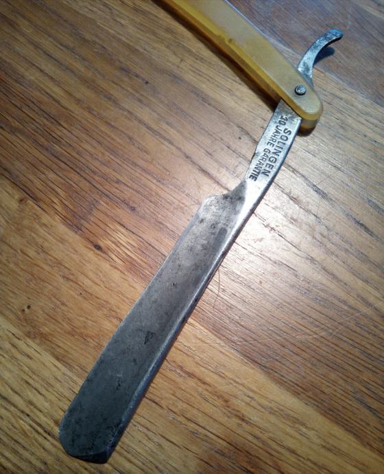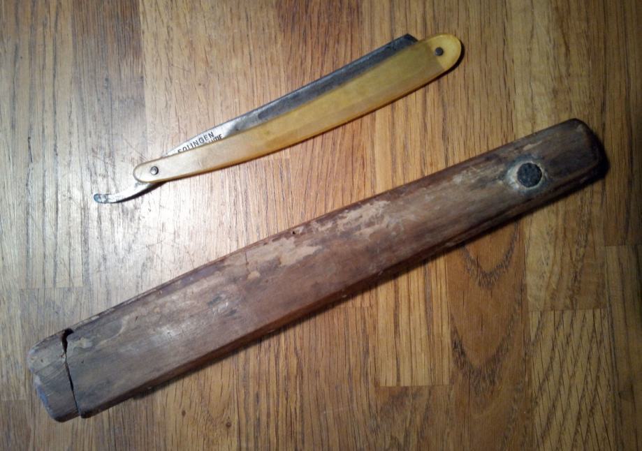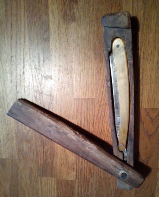 Pronađena u drvenoj kutiji evidentno ručno rađenoj,dužina zatvorene britve 15.4cm.Prekrasan rare predmet u jako dobrom stanju-(slanje nakon uplate predmeta na račun)