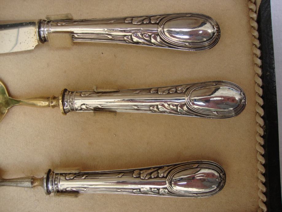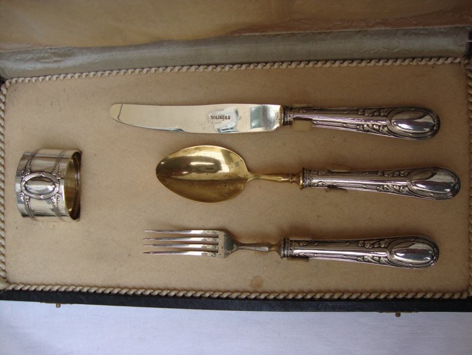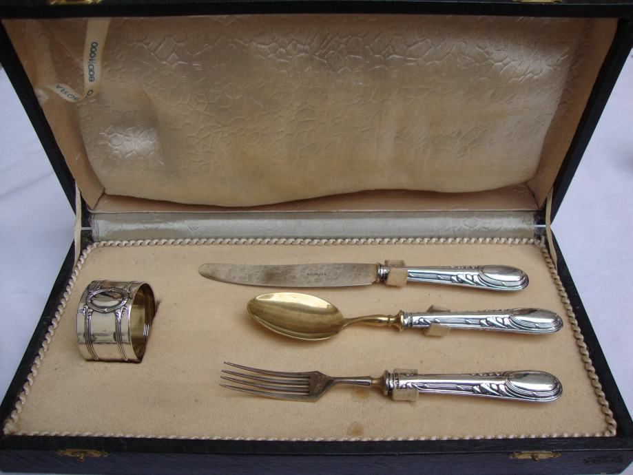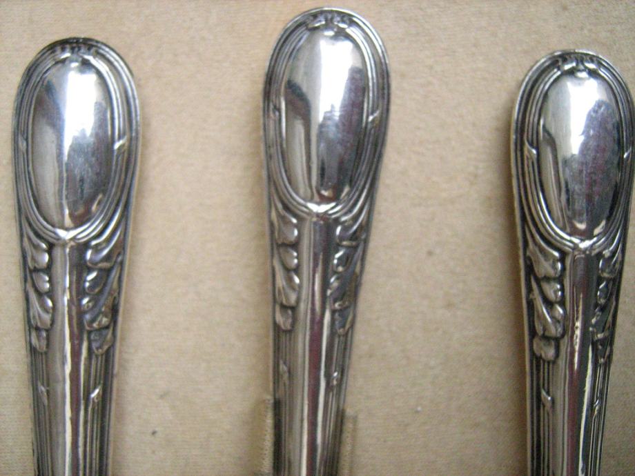 predivni srebrni secesijski pribor 4 kom,sastoji se :1 prsten za ubrus ,1 žličica,1 nož,1 vilica