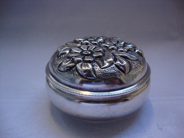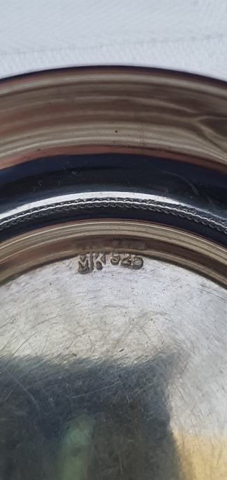 Oznaka je utisnuta u dnu kutijie majstor M.K 925 ukrašena je cvjetnim dezenom