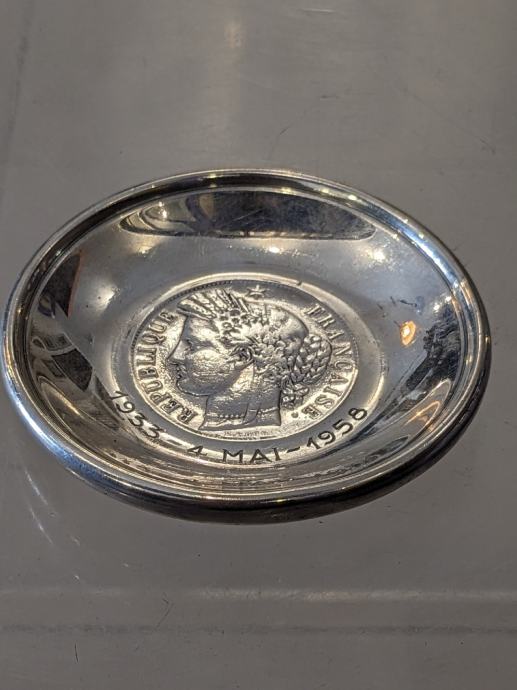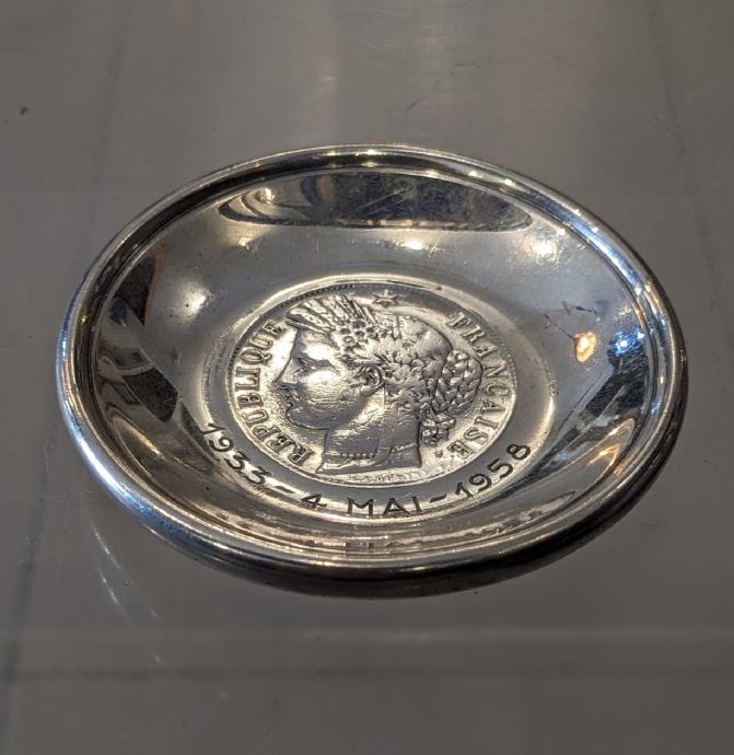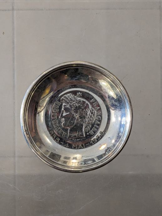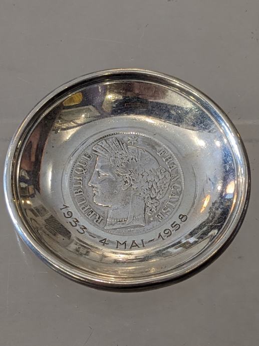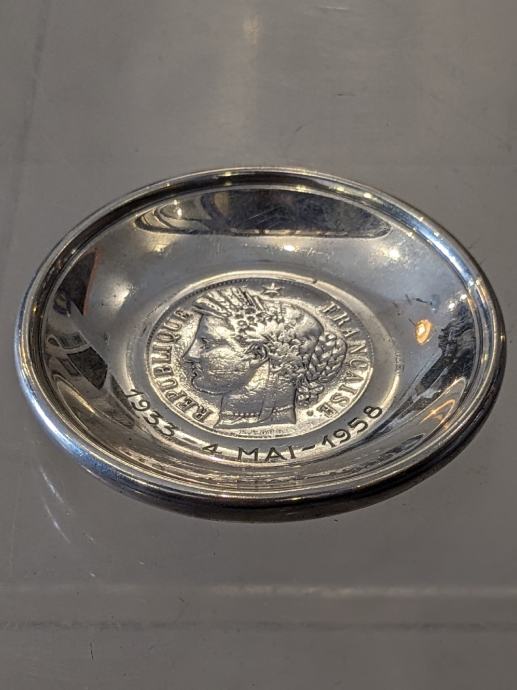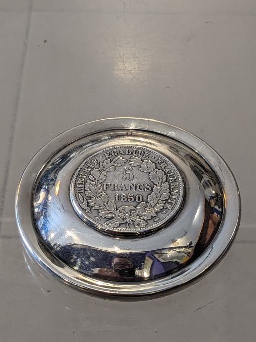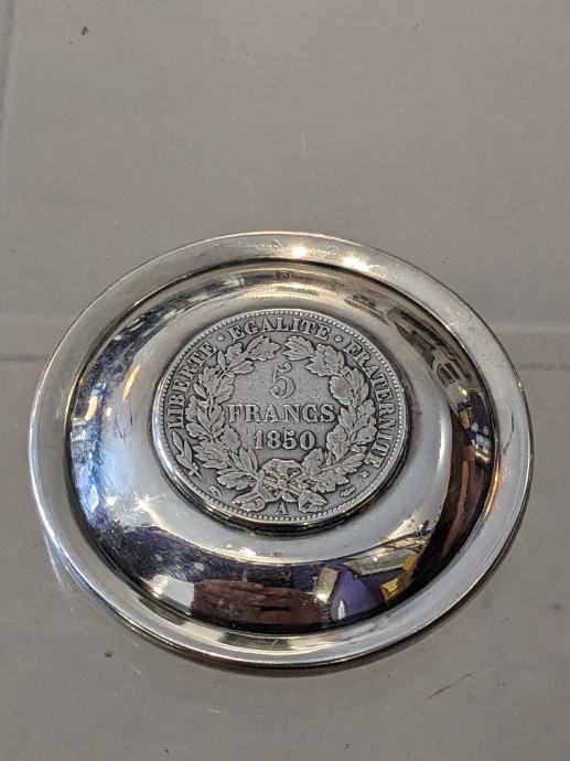 Mala posudica sa kovanicom od pet franaka, francusko srebro čistoće 950