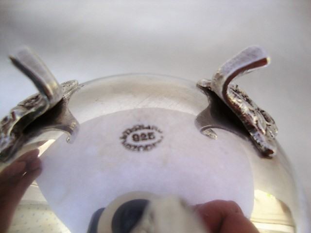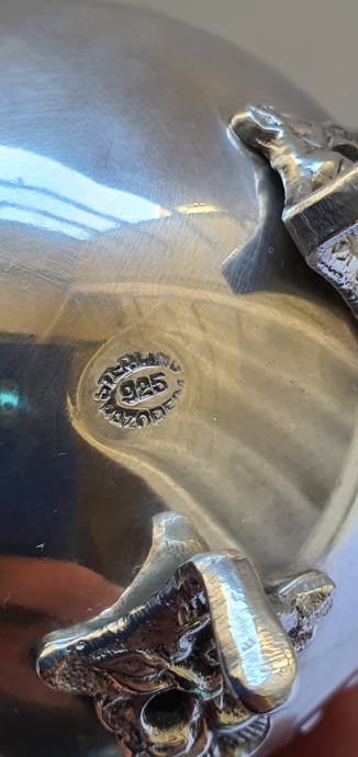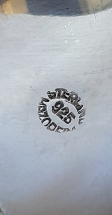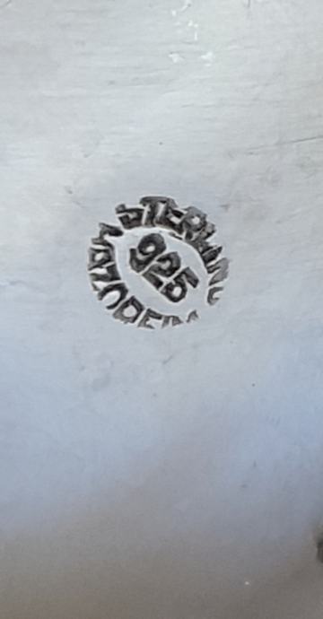 Ispod posude utisnuti žig sterling 925 i natpis proizvođača hazodem koji je nečitljiv ali sudeći po izradi južna amerika moguće i Maroko