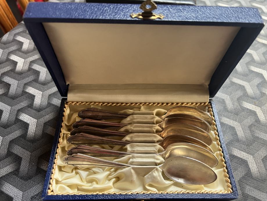 Srebrne cajne zlice x2.u pripadajucim kutijama.Stare,neupotrebljavane.Namjerno neociscene.Istaknuta cijena je orijentacijska!Molim samo ozbiljne ponude iskljucivo pozivom!