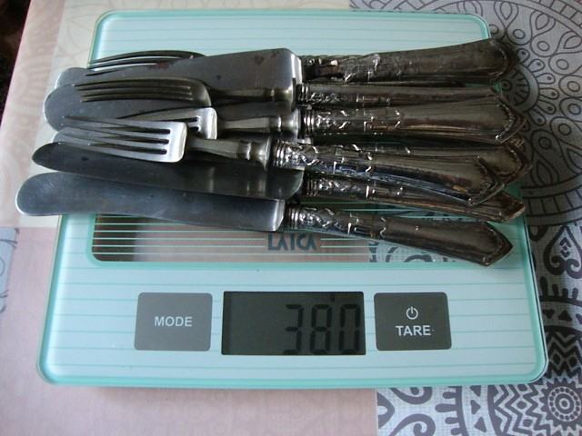 Uzorak mašna ,vijenci : sastoji se od 5 vilica i 5 noževa (jedan je minimalno oštećen vidljivo na slikama )
