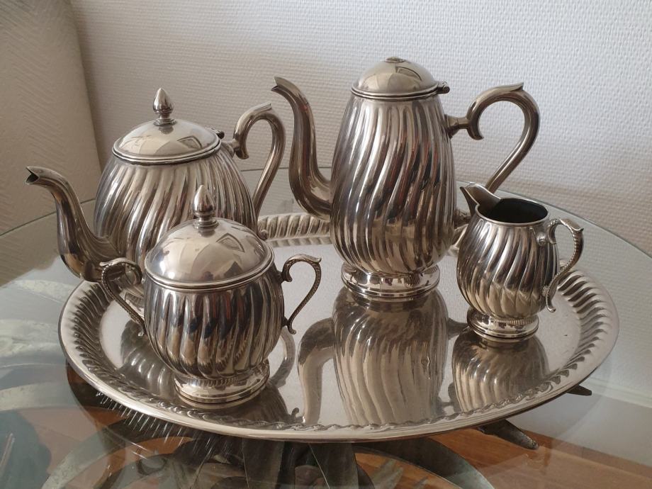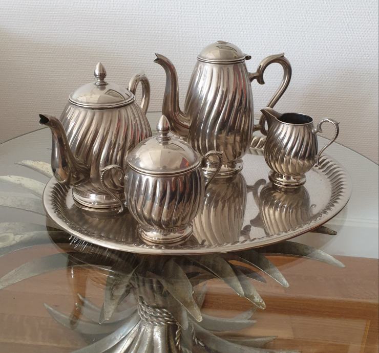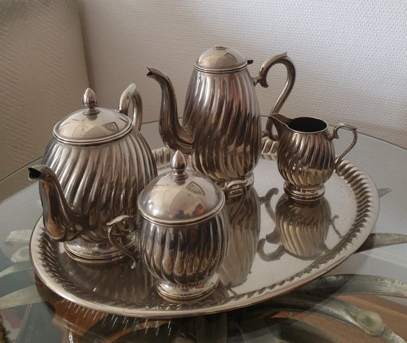 Prodajem set srebrne boje bez oznake (925) za kavu/čaj zajedno s tacnom u jako dobrom stanju. Cijena 75 eura.