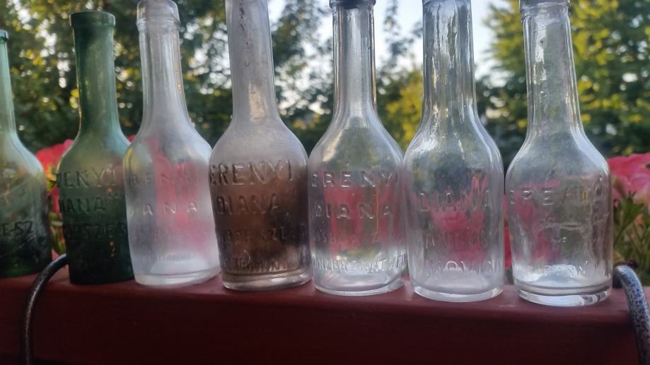 STAKLENE BOČICE DIANA-FRANZ BRANNT 1897 GOD. Kolekcija kompletna do pojave novije staklene ambslaže. Radi se o prvim primjercima koji su odlično sačuvani.