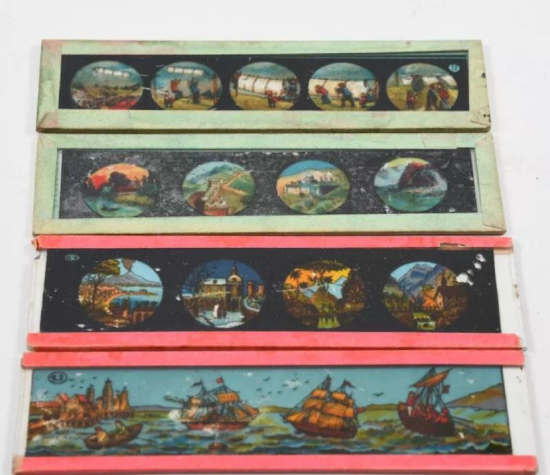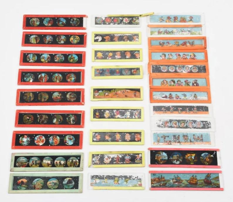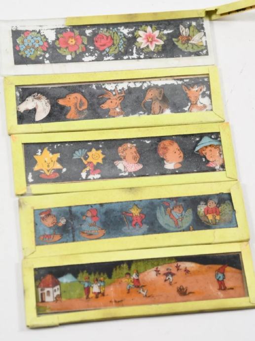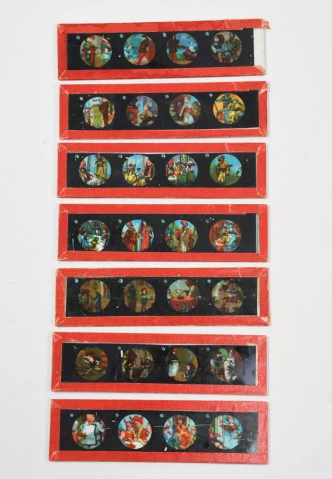 Lot od 30 staklenih sličica za diječje "lanterne magice" sa početka 1900tih godina