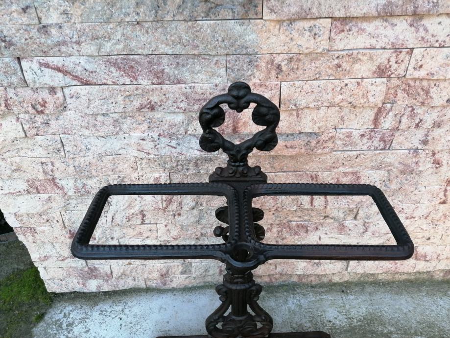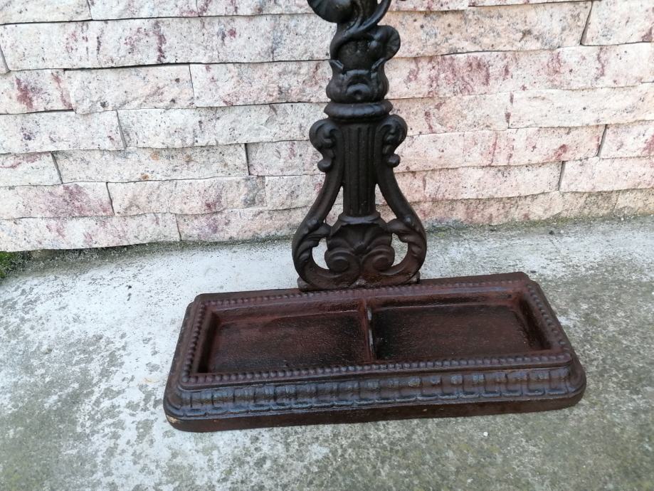 Dakle, ovo ne vidite svaki dan. Prekrasan stalak za kišobrane od masivnog lijevanog željeza. 19. stoljeće, original secesija, vrijeme Austro-ugarske monarhije. U top stanju. Donja posuda se da izvaditi. Dimenzije 68x41x17 cm. Jako rijetko, kolekcionarski predmet. Jako teško. Uporabno i ukrasno. Dobijete predmet sa slika.