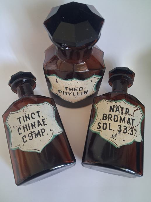 3 stare boce, jedna s otkrhnutim rubom, ta je besplatna.