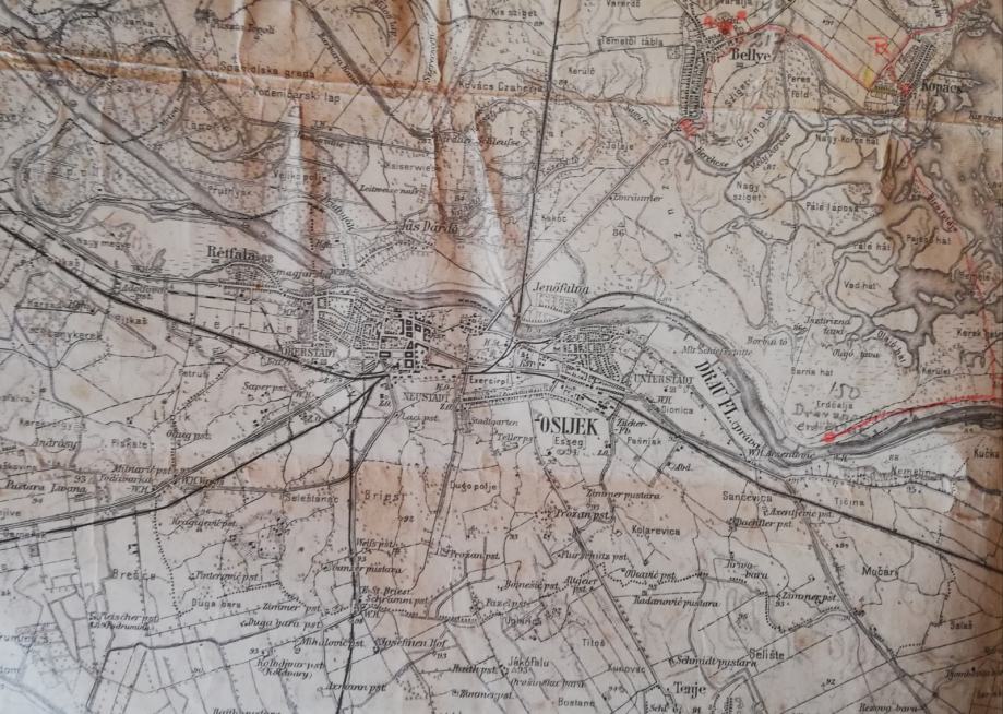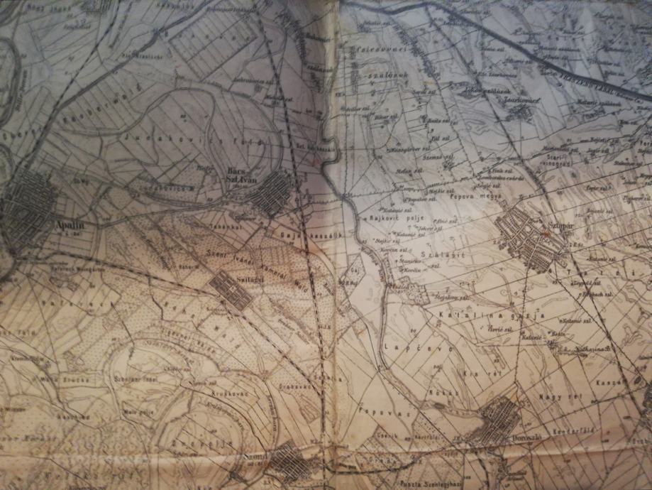 Stara Austrougarska topografske karta iz 1915.g., Joh Shulenburg, prikazuje prostor južne Mađarske od Siklosa i Harkanja , Bačke u Srbiji (Sombora) i Baranje i Slavonije u Hrvatskoj, do Osijeka i Valpova. Zanimljivo gradivo za sve one, koji vole povijest i stare vojne karte.