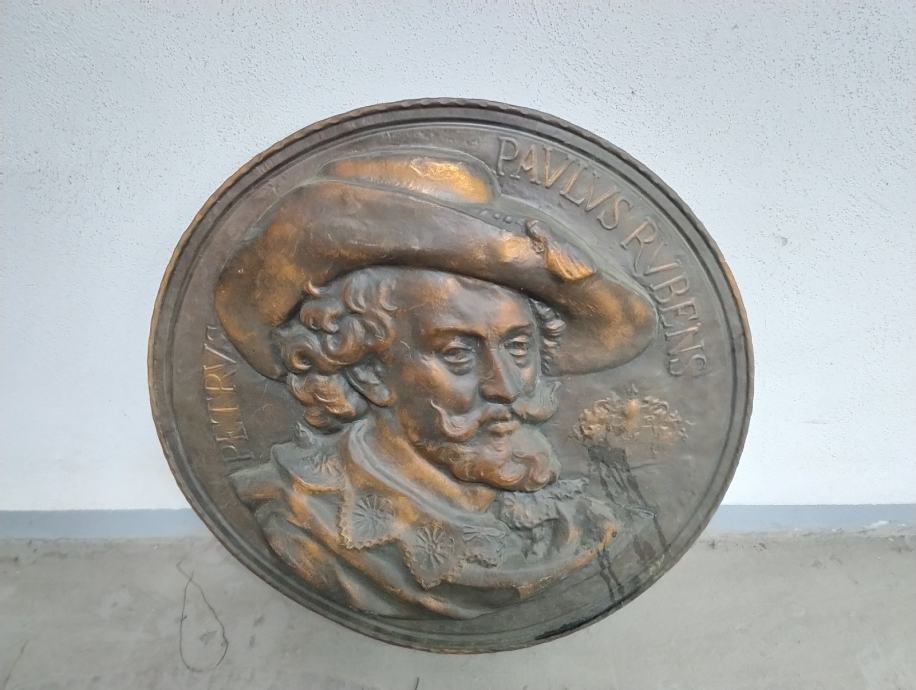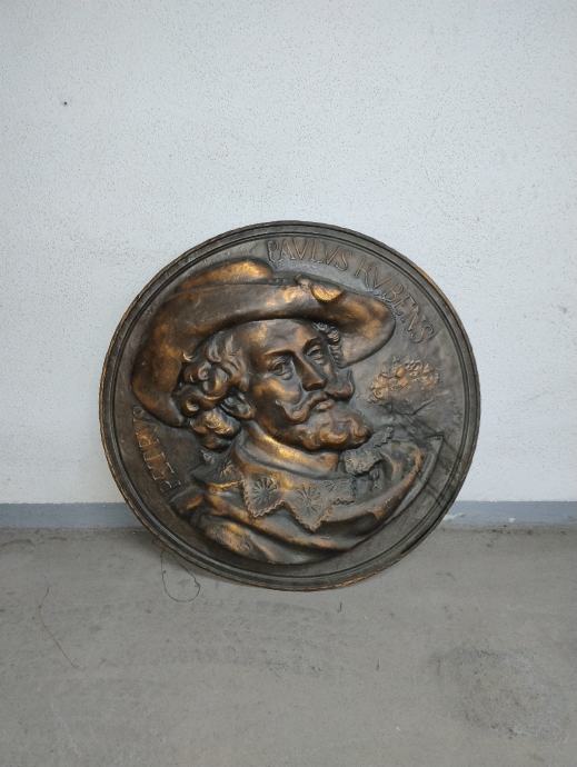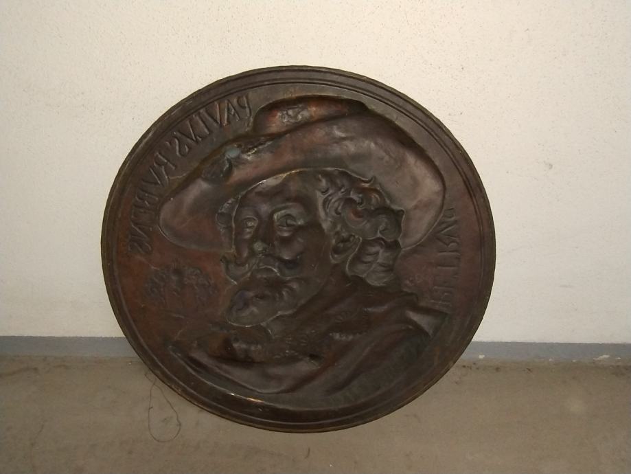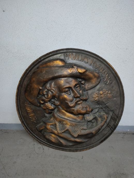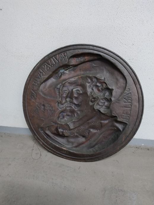 Velika prešana ili ručno obrađena bakrena ploča sa reljefom (nije odlijev) flamanskog majstora 'PETRVS PAVLVS RVBENS' , izradio francuski umjetnik Jean-Baptiste Daniel Dupuis, kipar (1849.-1899.). Ovaj reljef su početkom 20 stoljeća izradili Dupuisovi učenici. Rubens je prikazan u poprsju u visokom reljefu, okrenut tri četvrtine udesno sa šeširom širokog oboda. Izrađen od bakra, odljev je izvrstan s iznimnim detaljima na licu, kavalirskom šeširu, brkovima, bradi i njegovom ukrasnom čipkastom ovratniku. Podrijetlo iz Belgije otisnuto na poleđini, nabavljeno od trgovca antikvitetima u Shiresu.