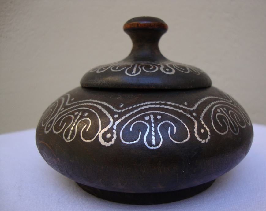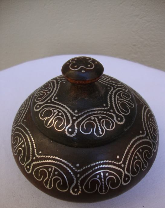 Kutija za nakit - orijentalni dezen - jako staro ručna zahtijevna tehnika izrade (ručno oslikavanje pa utuckivanje srebrne žice koje se radilo u 19 stoljeću na prediju Bosne i bliskog istoka