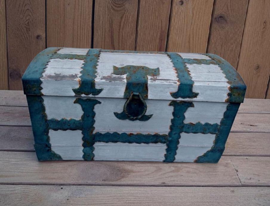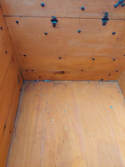 Prodajem staru (1940s-50s)masivnu drvenu škrinju sa lijepim rucno kovanim metalnim okovima i ručkama. Izrađena je od punog drva, vrlo čvrsta i očuvana s obzirom na starost. Unutrašnjost je uredna.Zdravo drvo.